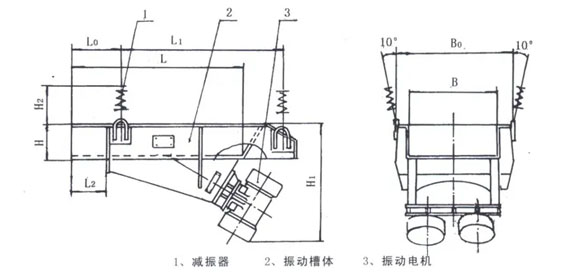 振动给料机主要由振动机架、振动电动机、弹簧、支承座及耐磨衬板等组成。
